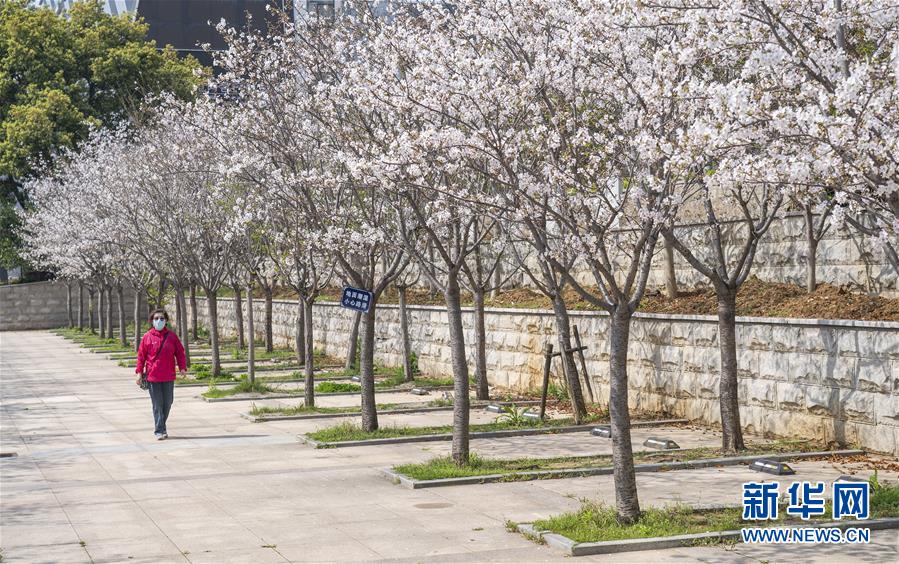 3月19日,在武漢市武昌區(qū)被網(wǎng)友稱為“武漢最美停車場(chǎng)”的湖北日?qǐng)?bào)停車場(chǎng),一名工作人員從櫻花樹邊經(jīng)過。 新華社記者 才揚(yáng) 攝