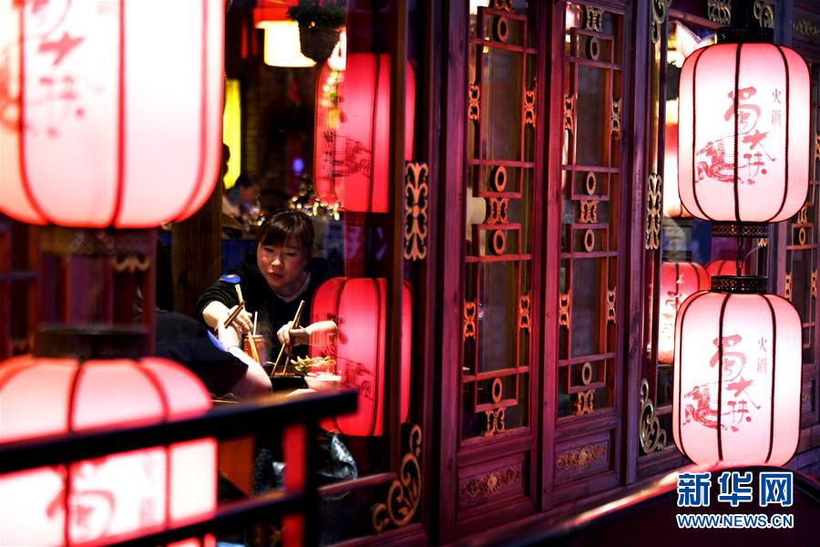 3月21日,在四川省成都市錦江區(qū)商業(yè)場街的一家火鍋店內,顧客在就餐。近日,在做好新冠肺炎疫情防控措施的基礎上,四川省成都市的火鍋店逐漸恢復營業(yè)。新華社記者王曦攝