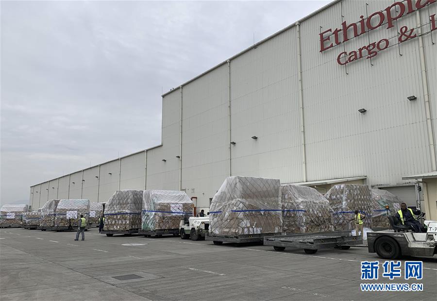 這是3月22日在埃塞俄比亞首都亞的斯亞貝巴國際機(jī)場(chǎng)拍攝的中國援助的抗疫物資。歷時(shí)10小時(shí)飛行,滿載著來自中國抗疫物資的埃航貨運(yùn)包機(jī)22日上午抵達(dá)埃塞俄比亞首都亞的斯亞貝巴的國際機(jī)場(chǎng),這是馬云公益基金會(huì)和阿里巴巴公益基金會(huì)捐贈(zèng)非洲的部分醫(yī)療物資,用于支援非洲54國抗擊疫情。新華社記者王守寶攝