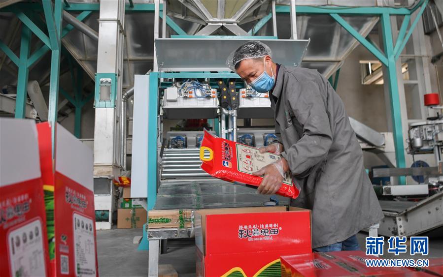 湖北當陽市壩陵辦事處群華村村民宋發(fā)林(右)和妻子在農(nóng)產(chǎn)品合作社包裝產(chǎn)品,準備通過電商外銷(3月21日攝)。近日,湖北當陽市農(nóng)業(yè)生產(chǎn)和農(nóng)產(chǎn)品加工加速恢復。截至3月19日,當陽市86家規(guī)上農(nóng)產(chǎn)品加工企業(yè)復工復產(chǎn)率為84.9%,51家農(nóng)業(yè)產(chǎn)業(yè)化重點龍頭企業(yè)有48家復工復產(chǎn),占比達94.1%。新華社記者程敏攝
