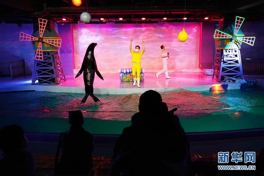 3月23日,游客在哈爾濱極地館觀看海獅表演。當(dāng)日,哈爾濱極地館恢復(fù)營(yíng)業(yè)。目前,極地館日接待人數(shù)不超過(guò)400人,園區(qū)采取分時(shí)段、間隔性辦法安排游客有序入園。游客實(shí)名預(yù)訂門票,入園要配合測(cè)溫、佩戴口罩、掃描“龍江健康碼”,刷身份證入館。新華社記者王建威攝