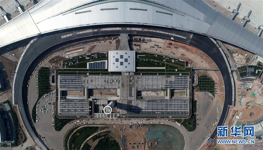 2019年6月12日無(wú)人機(jī)拍攝的建設(shè)中的青島膠東國(guó)際機(jī)場(chǎng)。新華社記者李紫恒攝