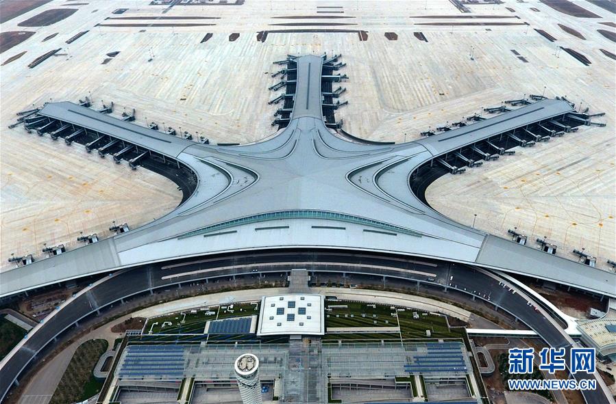 建設(shè)中的青島膠東國(guó)際機(jī)場(chǎng)(3月25日攝,無(wú)人機(jī)照片)。新華社記者李紫恒攝