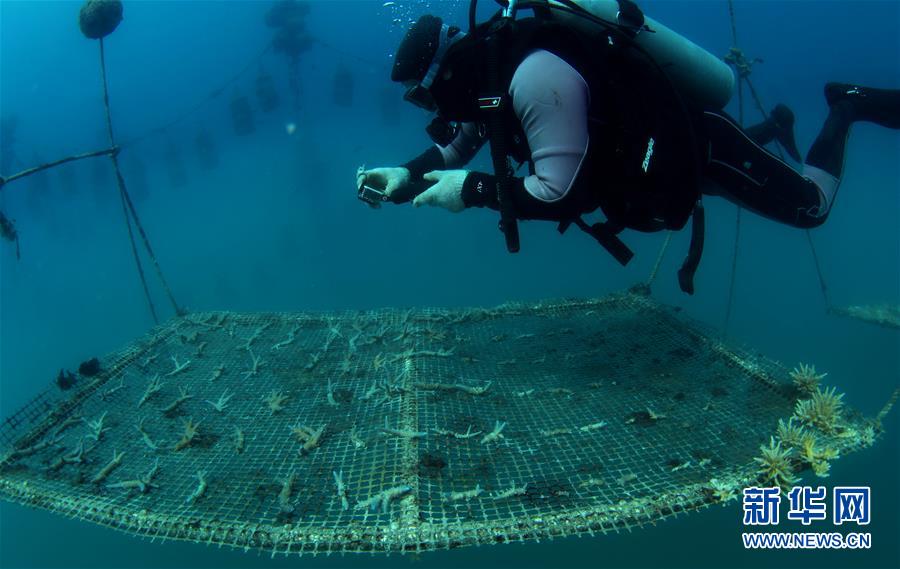 3月28日,在位于海南三亞蜈支洲島旅游區(qū)的海洋牧場(chǎng),工作人員在進(jìn)行巡護(hù)記錄。近日,位于海南三亞蜈支洲島旅游區(qū)的海洋牧場(chǎng)復(fù)工,海底作業(yè)逐漸恢復(fù)正常,開(kāi)始進(jìn)行人工魚(yú)礁吊裝擺位、水下監(jiān)控清理以及日常巡護(hù)等工作。據(jù)介紹,人工魚(yú)礁有利于魚(yú)類種類增加和數(shù)量提高,蜈支洲島海域海洋牧場(chǎng)人工魚(yú)礁表面附著珊瑚、貝類、藻類等生物種類達(dá)120余種。新華社記者楊冠宇攝