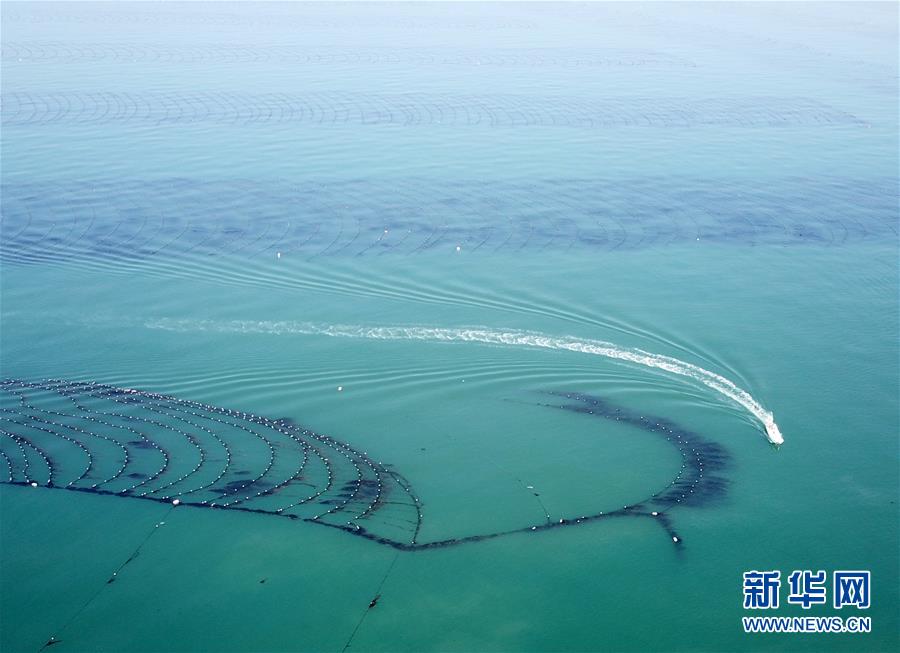 這是大欽島鄉(xiāng)附近海域的海帶養(yǎng)殖區(qū)(5月23日無人機(jī)拍攝)。新華社記者朱崢攝