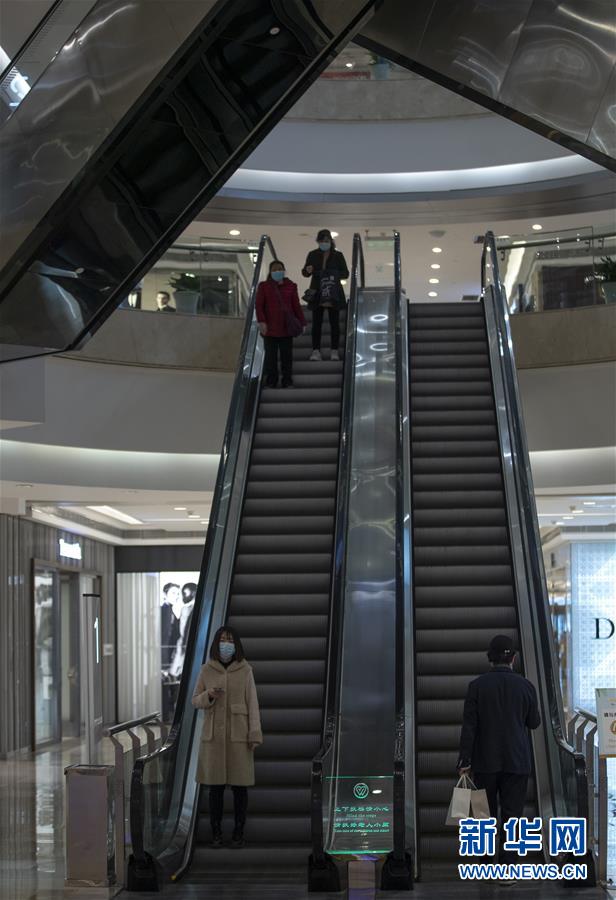 3月30日,在武商國際廣場,顧客乘坐滾梯。當(dāng)日,武漢市多家商場開門迎客。新華社記者費茂華攝