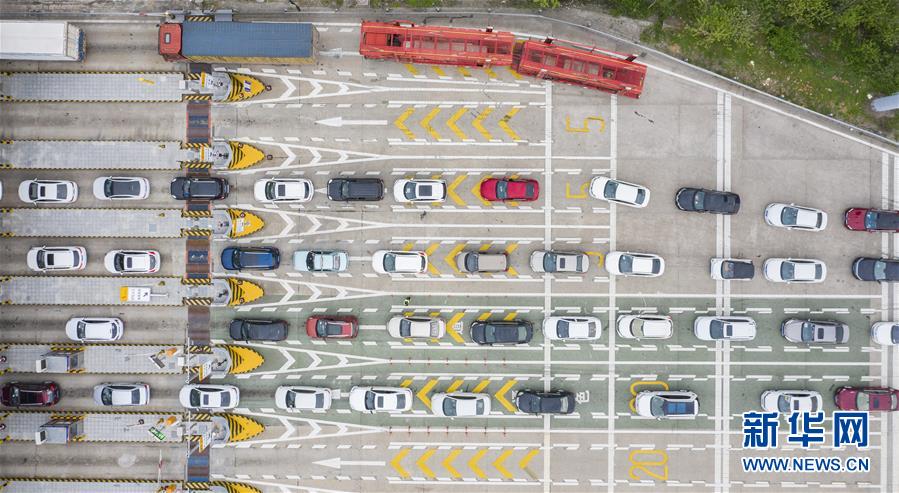 3月24日,在武漢西高速收費(fèi)站交通卡點(diǎn),返漢車(chē)輛排隊(duì)等候入城(無(wú)人機(jī)照片)。新華社記者才揚(yáng)攝