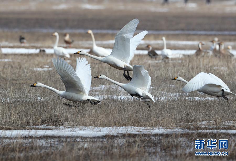 這是4月1日在張北縣黃蓋淖國(guó)家濕地公園拍攝的候鳥(niǎo)。近日,成群的候鳥(niǎo)飛臨壩上地區(qū)的河北省張北縣黃蓋淖國(guó)家濕地公園。近年來(lái),張北縣不斷加大生態(tài)建設(shè)力度,黃蓋淖國(guó)家濕地公園已成為多種候鳥(niǎo)遷徙的中轉(zhuǎn)站和棲息地。 新華社記者楊世堯攝