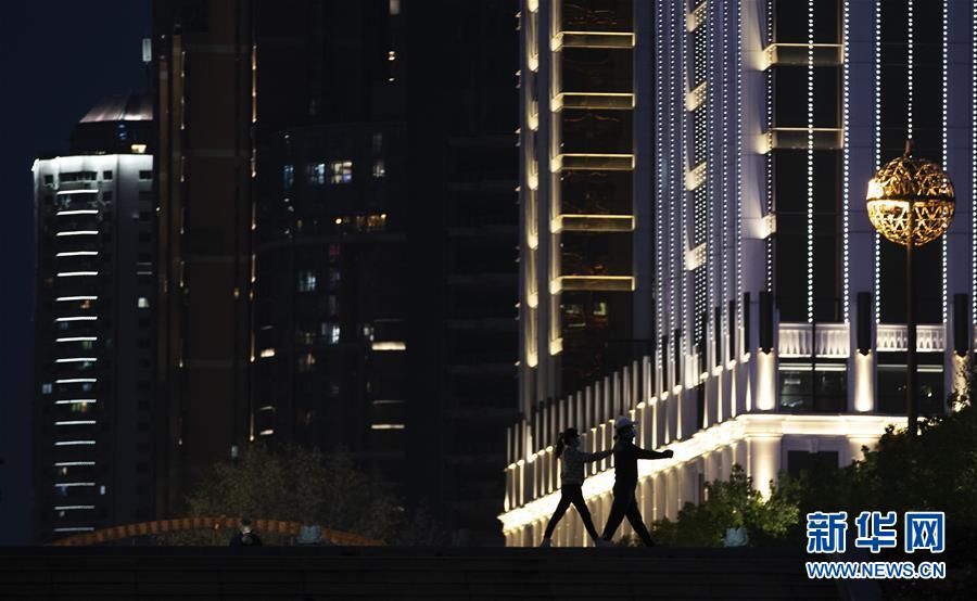 4月1日晚,兩位小朋友在江灘公園玩耍。新華社記者費(fèi)茂華攝