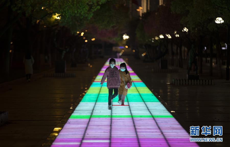 4月1日,在武漢天地廣場,幾個(gè)小朋友在玩耍。新華社記者費(fèi)茂華攝