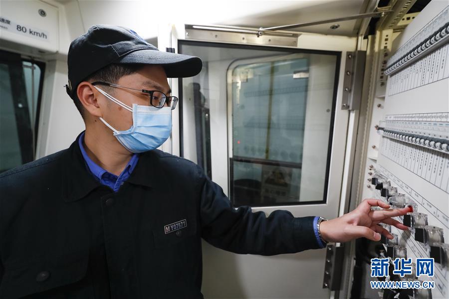 3月23日,武漢地鐵運(yùn)營有限公司車輛二部檢修一車間檢修員萬交林在地鐵列車上緩解所有制動(dòng),并檢查車輛制動(dòng)相關(guān)功能。新華社記者沈伯韓攝