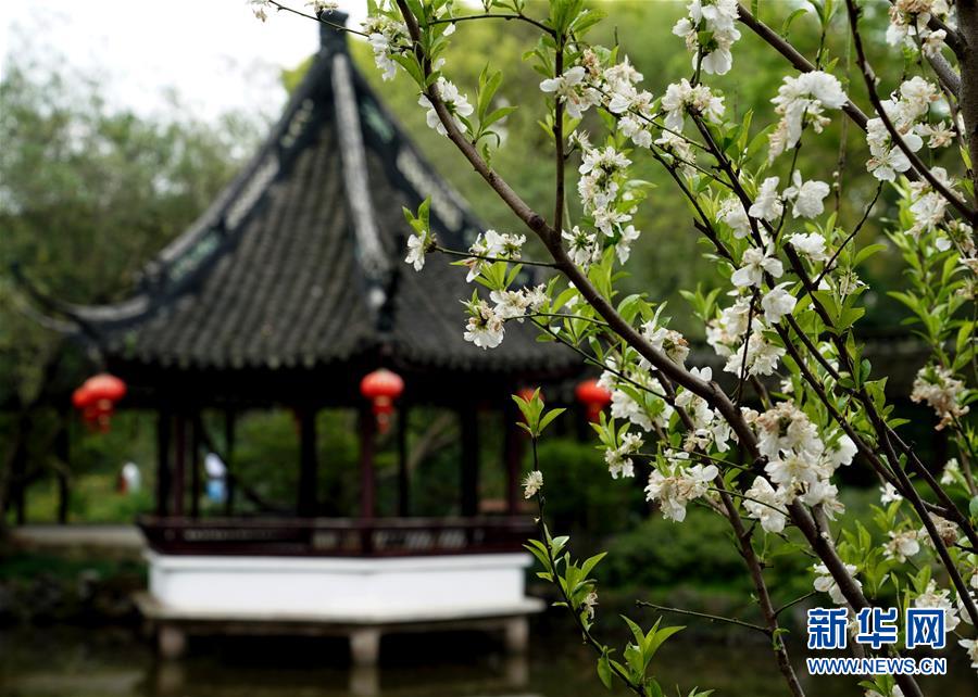 在位于上海松江的江南古典園林——醉白池,春花與古建筑相映襯(4月6日攝)。清明假期,上海的古典園林景點(diǎn)在做好防疫措施的同時(shí),有序開放運(yùn)營(yíng)。在粉墻黛瓦、春色滿園中,游人們欣賞濃濃春意,感受古色古香。 新華社記者 劉穎 攝