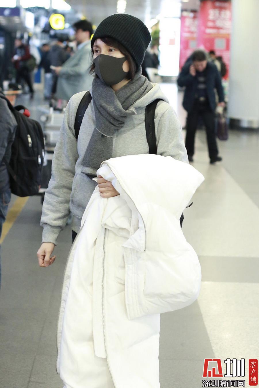 2019年1月5日,北京,袁泉現(xiàn)身機場。