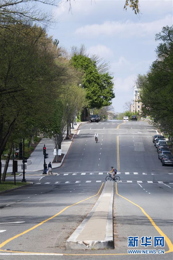4月8日,在美國首都華盛頓,市民在空曠的街道上騎行。美國約翰斯·霍普金斯大學(xué)8日發(fā)布的新冠疫情最新統(tǒng)計數(shù)據(jù)顯示,美國確診病例超過40萬例。美國目前是全球確診病例最多的國家。數(shù)據(jù)顯示,截至美國東部時間8日12時30分(北京時間9日0時30分),美國新冠確診病例升至401166例,死亡12936例。新華社記者劉杰攝