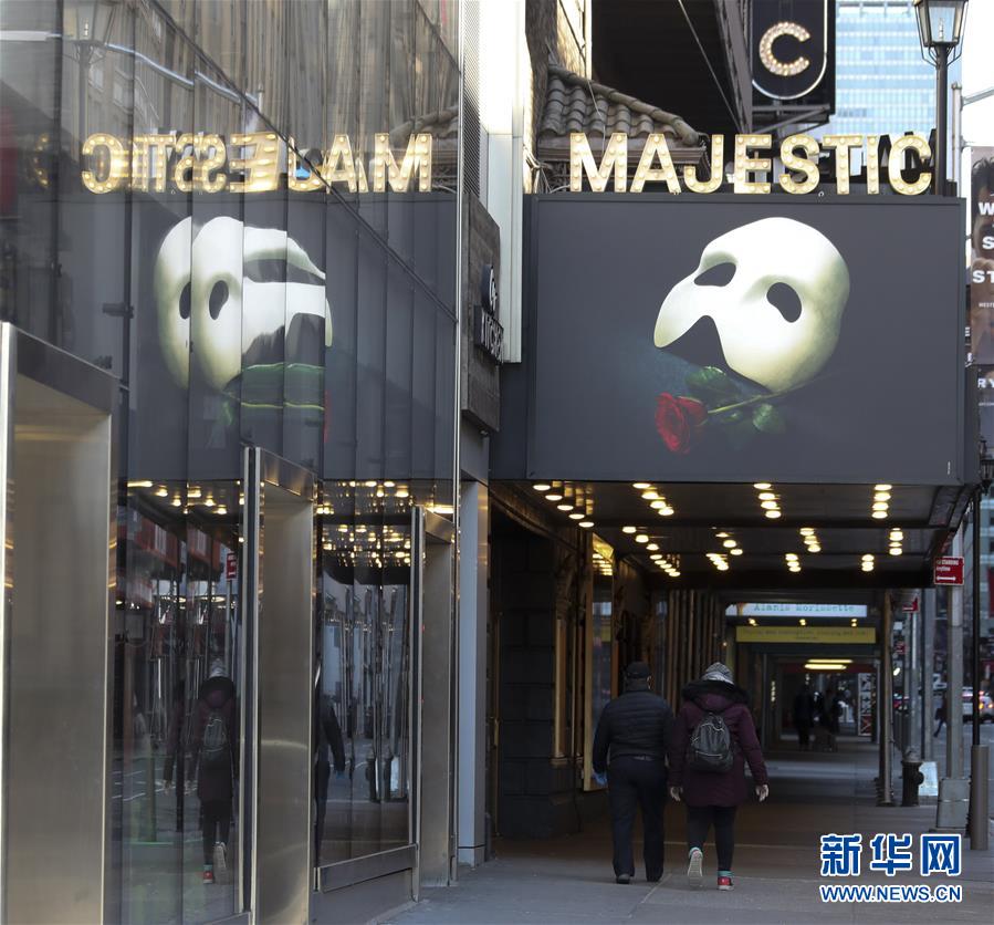 3月21日,在美國(guó)紐約百老匯劇院區(qū),人們從冷清的街道走過。新華社記者王迎攝