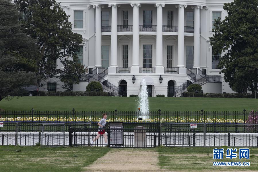 4月1日,在美國(guó)首都華盛頓,一名男子在白宮附近跑步。新華社記者劉杰攝