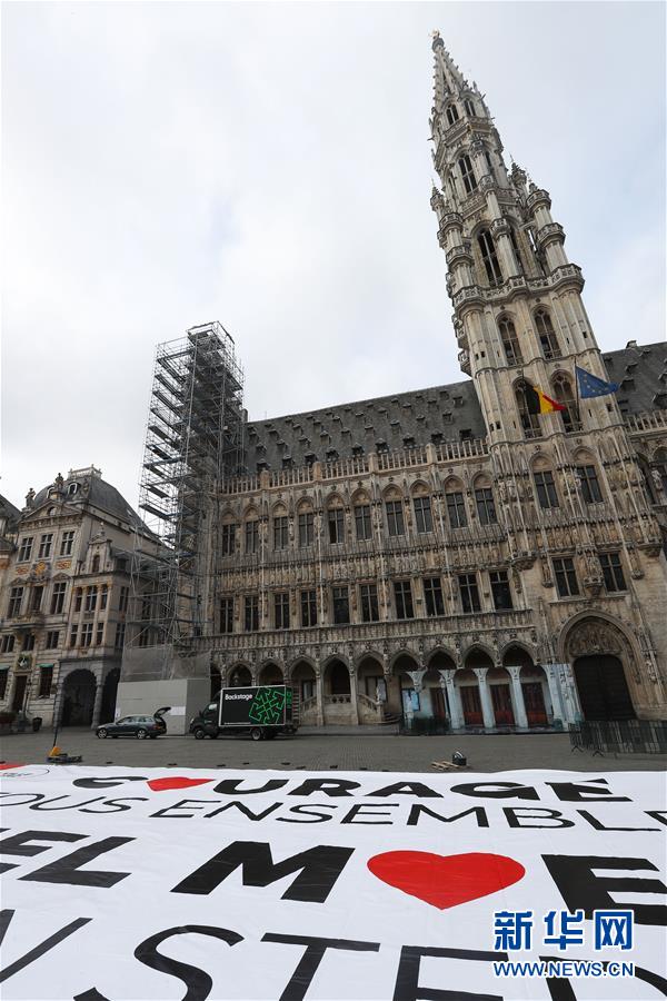 這是4月13日在比利時(shí)布魯塞爾大廣場拍攝的為抗擊疫情加油的巨幅海報(bào)。當(dāng)日,比利時(shí)布魯塞爾市政府工作人員在市中心的大廣場展開一面巨幅海報(bào),上面用法語和荷蘭語印著“一起鼓起勇氣”“謝謝”,以感謝市民及醫(yī)療人員為抗擊疫情所做的努力。新華社記者鄭煥松攝