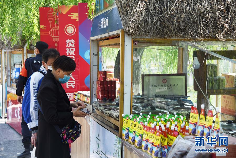 4月13日,游客在濟南百花洲歷史文化街區(qū)購買文創(chuàng)產品。新華社記者王凱攝