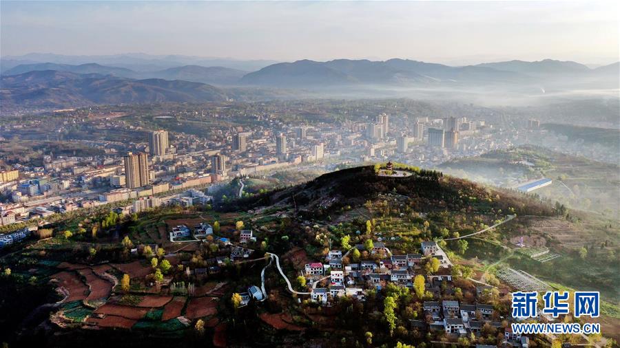 4月13日清晨時(shí)分拍攝的洛南縣城(無(wú)人機(jī)照片)。新華社記者陶明攝