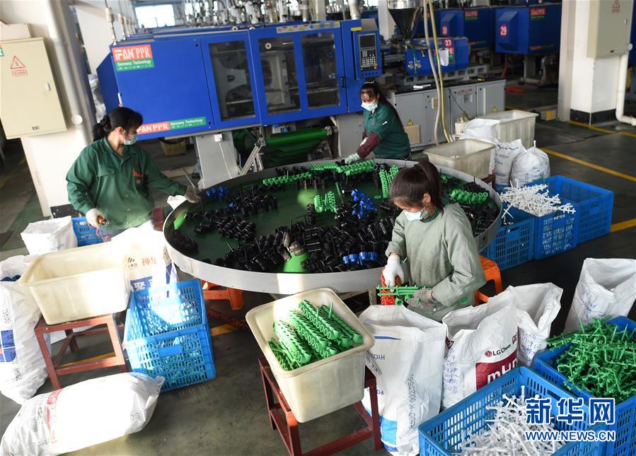 4月13日,員工在位于店口鎮(zhèn)的諸暨市風(fēng)帆管業(yè)有限公司注塑車間分揀自動化生產(chǎn)線上的管件。新華社記者韓傳號攝