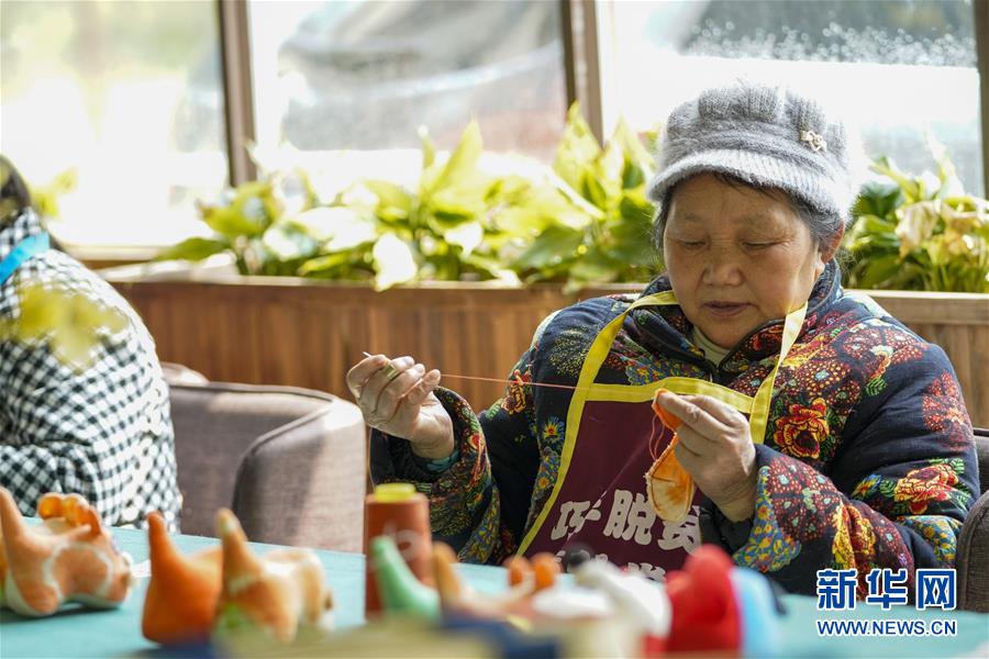 4月8日,在重慶石柱中益鄉(xiāng)巾幗扶貧工坊,當?shù)貗D女縫制土家族風情布老虎。近年來,重慶市石柱土家族自治縣中益鄉(xiāng)在重慶市婦聯(lián)的幫助下,以當?shù)胤沁z傳統(tǒng)技藝作為結(jié)合點,把扶貧與扶志、扶智相結(jié)合,通過引進外來文創(chuàng)企業(yè)對留守婦女、貧困及殘疾人群進行刺繡培訓,設(shè)立巾幗扶貧工坊等多種形式,幫助當?shù)卮迕駥崿F(xiàn)就業(yè)增收。據(jù)介紹,巾幗扶貧工坊運行以來,為當?shù)仃懤m(xù)開發(fā)出土家族布老虎、手提袋、餐墊繡邊、創(chuàng)意相框等一系列文創(chuàng)產(chǎn)品,幫助參加巾幗扶貧工坊的留守婦女和貧困村民實現(xiàn)月均增收近千元。新華社記者劉潺攝