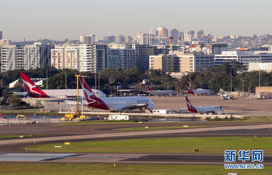4月15日,在澳大利亞悉尼機場,多架澳洲航空客機停泊在維修區(qū)。新華社記者白雪飛攝