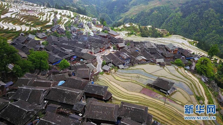 4月19日拍攝的貴州省從江縣加榜鄉(xiāng)加車村苗寨景觀(無人機(jī)照片)。貴州省從江縣把人居環(huán)境整治作為脫貧攻堅(jiān)工作的一項(xiàng)重要舉措來抓,對(duì)鄉(xiāng)村規(guī)劃范圍內(nèi)長(zhǎng)期無人居住的危房、廢棄禾倉、棚圈、柴草房和房前屋后的殘?jiān)珨啾诘冗M(jìn)行清理整治,進(jìn)行復(fù)墾復(fù)綠,同時(shí)開展農(nóng)戶衛(wèi)生和村寨環(huán)境整治,做到鄉(xiāng)村環(huán)境干凈、衛(wèi)生、整潔,扮靚美麗鄉(xiāng)村。新華社記者楊文斌攝