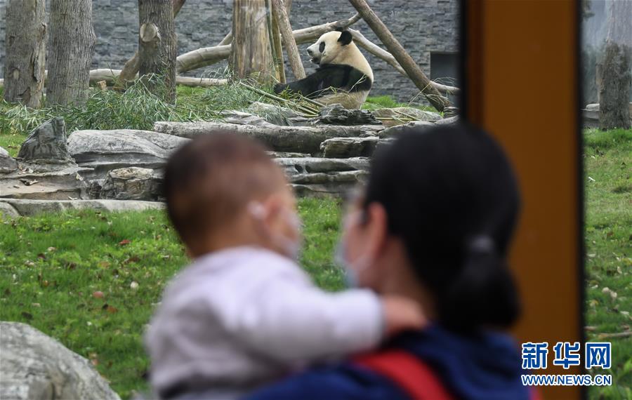 4月22日,大熊貓迎來參觀的游客。當(dāng)日,在嚴(yán)格落實(shí)疫情防控措施的前提下,武漢動(dòng)物園有序恢復(fù)開放。新華社記者程敏攝