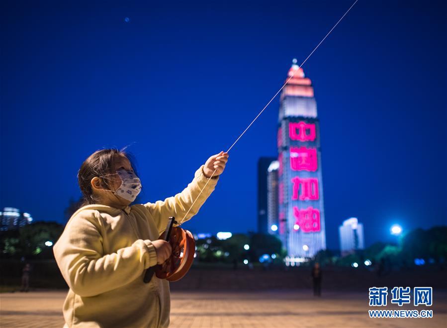 這是4月7日晚在武漢龜山拍攝的夜景(無人機(jī)照片)。新華社記者肖藝九攝
