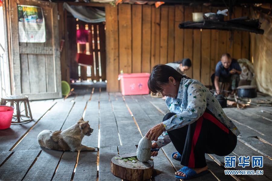 4月12日,在云南省勐??h布朗山鄉(xiāng)曼囡村曼班三隊(duì),娜四在家切菜。新華社記者胡超攝