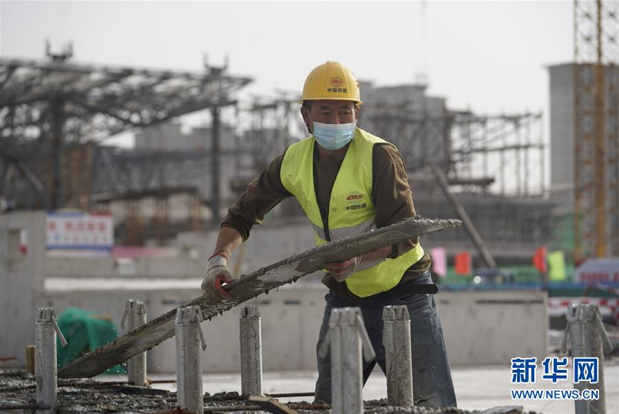 4月24日,中鐵建設集團的工人在星火站施工。北京星火站是京沈高鐵的始發(fā)站,站房總建筑面積18.3萬平方米,將于2020年底完工。目前正在進行混凝土主體結(jié)構(gòu)收尾工作,鋼結(jié)構(gòu)主體正在緊張施工,即將完工。新華社記者邢廣利攝