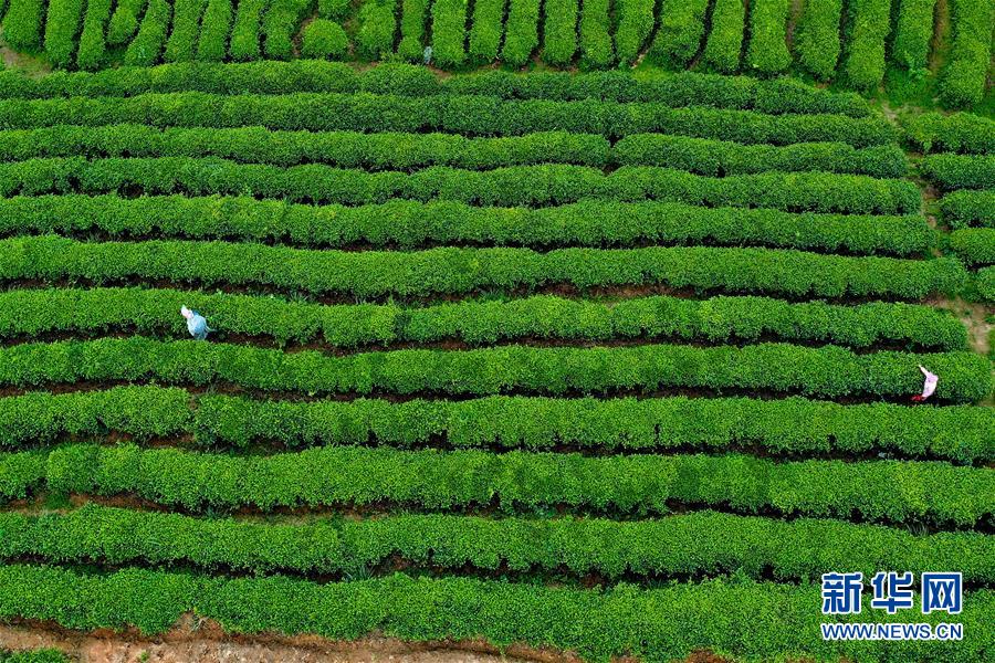 4月25日,茶農(nóng)在“扶貧茶園”內(nèi)采茶(無(wú)人機(jī)照片)。谷雨過(guò)后,在貴州省黔東南苗族侗族自治州丹寨縣“扶貧茶園”,茶農(nóng)搶抓農(nóng)時(shí)趕制春茶。丹寨縣創(chuàng)新產(chǎn)業(yè)扶貧模式,鼓勵(lì)社會(huì)公眾線上認(rèn)領(lǐng)茶園,再由茶園聘請(qǐng)當(dāng)?shù)刎毨魟?wù)工,為貧困戶創(chuàng)造茶園管理、采茶、制茶等就業(yè)機(jī)會(huì),幫助貧困戶增收。今年以來(lái),“扶貧茶園”已接受線上預(yù)訂600余畝,給當(dāng)?shù)?00余名村民提供了就業(yè)機(jī)會(huì)。新華社記者歐東衢攝