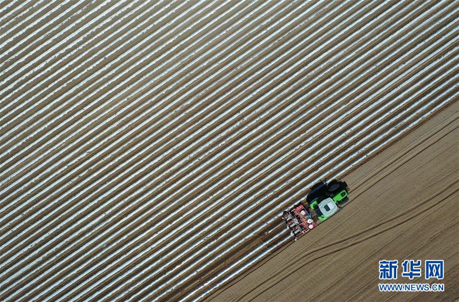 4月25日,灤南縣東黃坨鎮(zhèn)新戶村農(nóng)民使用拖拉機給準(zhǔn)備栽植煙薯秧苗的土地開溝覆膜(無人機照片)。近年來,河北省灤南縣利用當(dāng)?shù)赝寥篮蜌夂蛱攸c,引導(dǎo)農(nóng)民因地制宜發(fā)展煙薯種植,取得良好效果。目前該縣煙薯種植面積達(dá)3萬多畝,每畝年收入達(dá)5000多元。新華社記者楊世堯攝