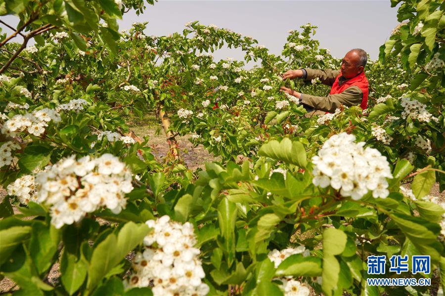 4月26日,農(nóng)民在河北省清河縣馬屯紅果種植專業(yè)合作社的山楂種植區(qū)內(nèi)忙碌。4月下旬以來,河北省清河縣2萬余畝山楂樹競相開花,成為一道亮麗的風(fēng)景線。清河縣年產(chǎn)山楂7.5萬余噸,山楂種植已成為當(dāng)?shù)剞r(nóng)民的重要增收途徑。新華社記者牟宇攝