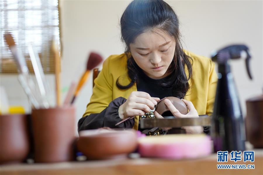 重慶榮昌安陶小鎮(zhèn)的一個工坊內(nèi),當?shù)刂铺账嚾嗽谥谱靼蔡债a(chǎn)品(3月25日攝)。素有“渝西門戶”之稱的榮昌,已從重慶、成都中間地帶的“產(chǎn)業(yè)塌陷區(qū)”變身為投資熱土,成為重慶發(fā)展最快的地區(qū)之一,也見證著成渝從“背向發(fā)展”到“相向發(fā)展”的滄桑巨變。新華社記者劉潺攝