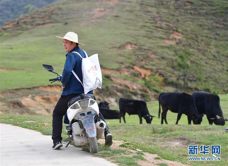 李義成騎車前往堯告村高山天然牧場,準備了解養(yǎng)牛場的養(yǎng)殖情況(4月26日攝)。新華社記者黃孝邦攝