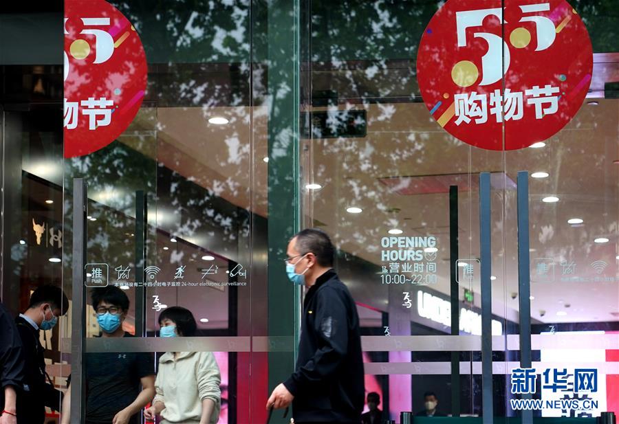 上?;春B芬患疑虉?chǎng)的“五五購(gòu)物節(jié)”標(biāo)識(shí)(5月5日攝)。5月4日晚,上海首次啟動(dòng)大規(guī)模商業(yè)促銷活動(dòng)“五五購(gòu)物節(jié)”,多家在線新經(jīng)濟(jì)企業(yè)參與,通過(guò)線上流量?jī)?yōu)勢(shì)反哺線下賣場(chǎng),實(shí)現(xiàn)電商與實(shí)體零售融合互動(dòng),激活消費(fèi)潛力、驅(qū)動(dòng)消費(fèi)復(fù)蘇。據(jù)“上海發(fā)布”的消息,截至5日14時(shí)12分,“五五購(gòu)物節(jié)”上海地區(qū)消費(fèi)支付總額已超100億元。新華社記者劉穎攝