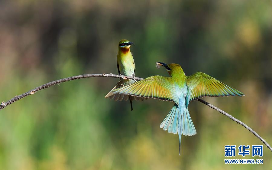 在海口五源河下游蜂虎保護小區(qū),栗喉蜂虎在覓食(5月7日攝)。新華社記者楊冠宇攝