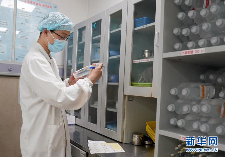 5月10日,在上海市普陀區(qū)中心醫(yī)院急診室,護士蔡杰君在準(zhǔn)備藥品。他曾在浦東國際機場“外防輸入”抗疫一線堅守30天。新華社記者劉穎攝