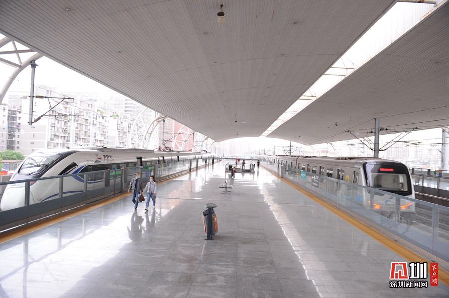 2020年5月11日,四川省成都市,動(dòng)車和地鐵??吭谙只疖囌?。該站在全國(guó)首創(chuàng)鐵路與地鐵同臺(tái)換乘記錄,提升了市域鐵路銜接公共交通的效率。