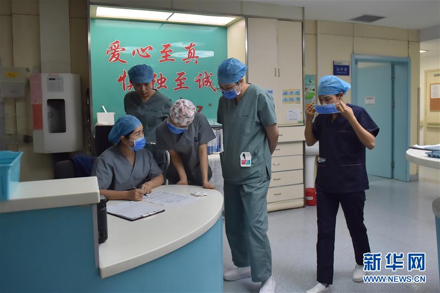 5月11日,在北京地壇醫(yī)院感染二科護(hù)士站,白班護(hù)士張莉(左一)和夜班護(hù)士們交接工作。北京地壇醫(yī)院是北京市收治新冠肺炎患者的定點(diǎn)醫(yī)院之一,醫(yī)院的醫(yī)護(hù)人員一直奮戰(zhàn)在抗擊疫情的一線(xiàn)。在國(guó)際護(hù)士節(jié)前夕,記者前往北京地壇醫(yī)院,記錄下抗疫一線(xiàn)護(hù)士的日常工作狀態(tài)。新華社記者彭子洋攝