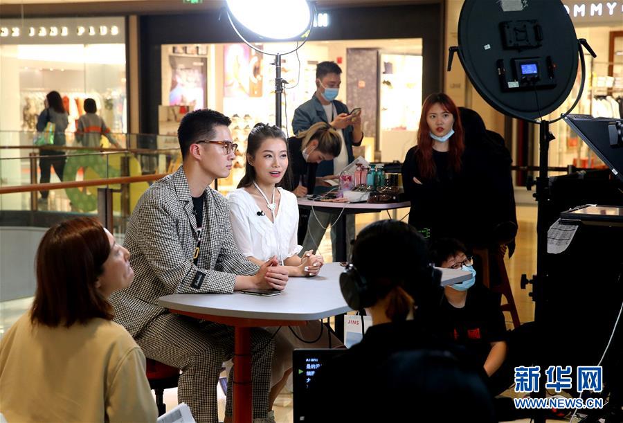 這是5月9日在上海一家商場拍攝的網(wǎng)絡直播活動現(xiàn)場。新華社記者陳飛攝