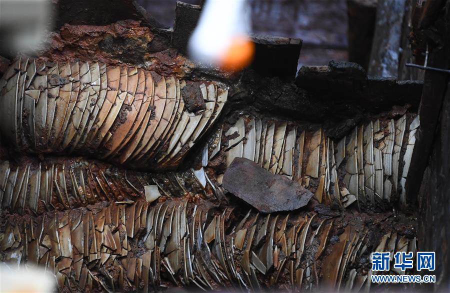 這是在廣東陽江海陵島拍攝的“南海I號”船體上嵌入的瓷器(5月12日攝)。新華社記者鄧華攝