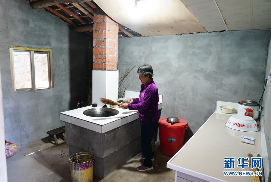 5月12日,在安康市漢濱區(qū)早陽鎮(zhèn)寨埡村,村民尚玉蓮在自家改造后的廚房內(nèi)清潔灶臺。新華社記者邵瑞攝