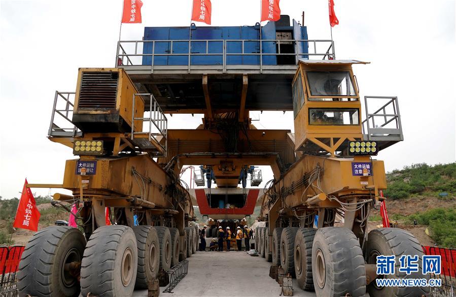 5月13日,運架一體機在位于河南焦作的施工現(xiàn)場進(jìn)行架梁作業(yè)。 當(dāng)日,隨著最后一榀長24米、重552噸的箱梁架設(shè)就位,太焦高鐵全線橋梁架設(shè)完成。從山西太原到河南焦作的太焦高鐵是國家規(guī)劃建設(shè)的“八縱八橫”高速鐵路網(wǎng)的重要組成部分,計劃2020年底建成通車。 新華社記者李安攝