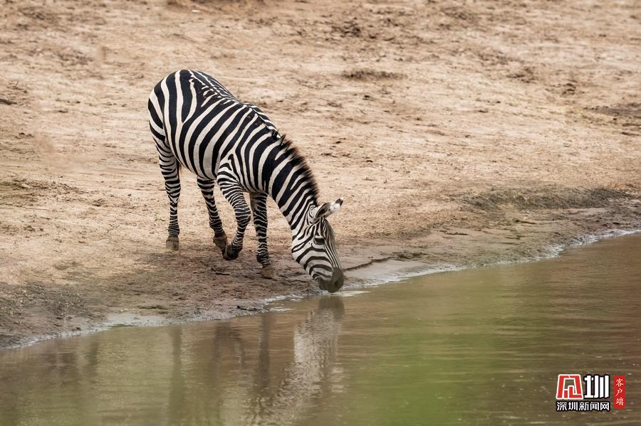 當時有超過1000只斑馬,正在河岸上等候合適的機會過河,它們快速低頭喝水后又迅速返回河岸。