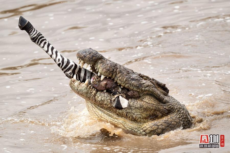 2020年5月20日報道(具體拍攝時間不詳),印度攝影師Nimit Virdi在肯尼亞賽馬拉國家保護區(qū)中親眼目睹到鱷魚獵食的震撼畫面。