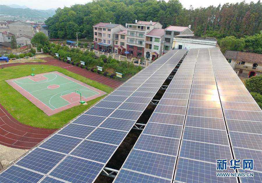 這是5月13日在福建省建甌市小橋鎮(zhèn)陽澤村拍攝的光伏電站(無人機(jī)照片)。陽澤村光伏發(fā)電精準(zhǔn)扶貧項(xiàng)目裝機(jī)容量為50千瓦,年預(yù)計(jì)發(fā)電量5.4萬千瓦時(shí)。