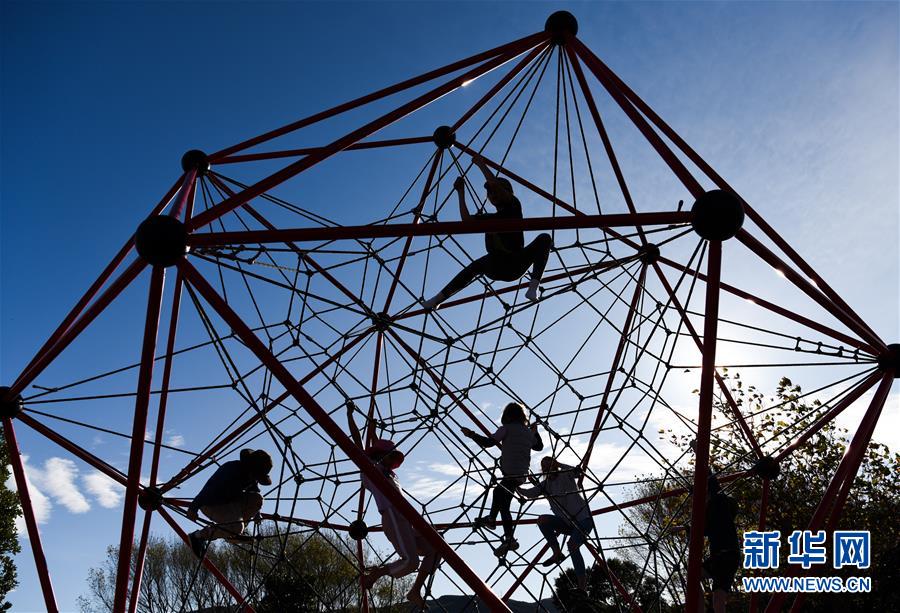 5月14日,孩子們在首都惠靈頓郊外公園的游樂場玩耍。當天是新西蘭從新冠疫情防控響應三級下調到二級的第一天,經濟活動全面重啟,公園等公共設施首次重新開放,中小學生將于5月18日全面返校復課。新華社記者郭磊攝