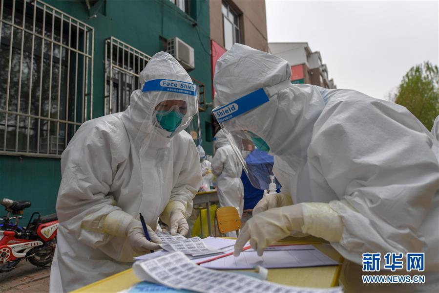 5月15日,在舒蘭市建馨園小區(qū),工作人員進(jìn)行采樣準(zhǔn)備工作。當(dāng)日,從吉林市7家市直醫(yī)院抽調(diào)的300名護(hù)士經(jīng)培訓(xùn)后,全部投入到舒蘭市(隸屬于吉林市)核酸采樣工作中。為提供追溯傳染源所必需的核酸檢測(cè)相關(guān)數(shù)據(jù),舒蘭市根據(jù)確診病例的活動(dòng)軌跡,將流調(diào)和核酸檢測(cè)范圍擴(kuò)大至本地確診病例和無(wú)癥狀感染者的次密接人員及一般接觸者。新華社記者張楠攝